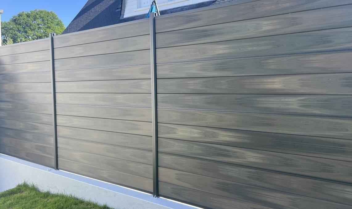 Clôture en bois composite gris sauvage : élégance et durabilité pour vos espaces extérieurs