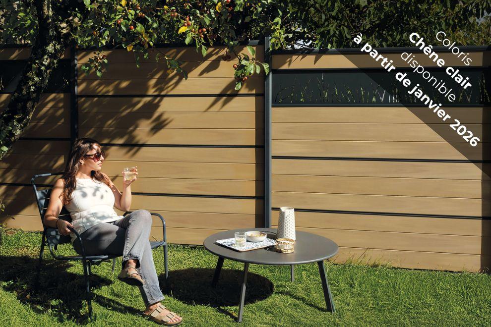 La nostra recinzione in composito Atmosphere si installa a meraviglia e serve da paravista, paravento, muretto, ecc.