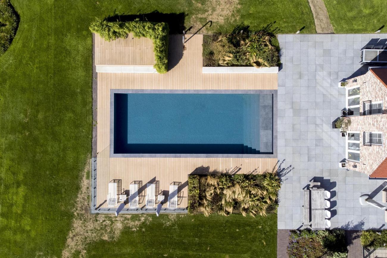 Bordo di piscina, lame grigio antracite